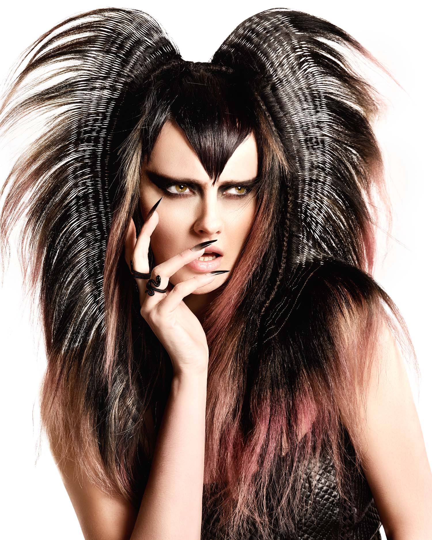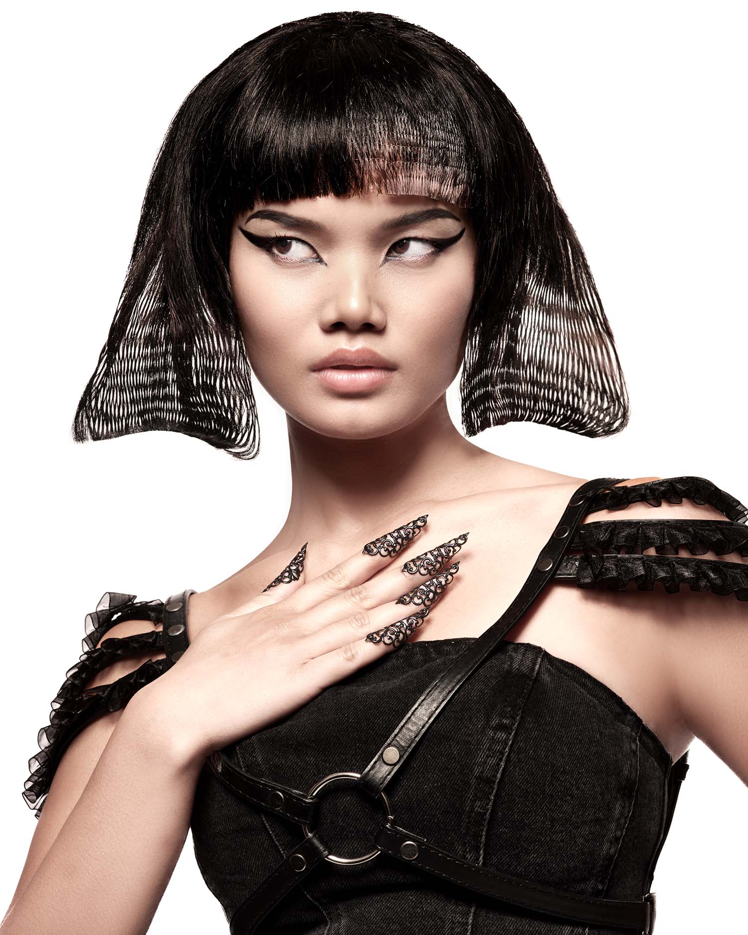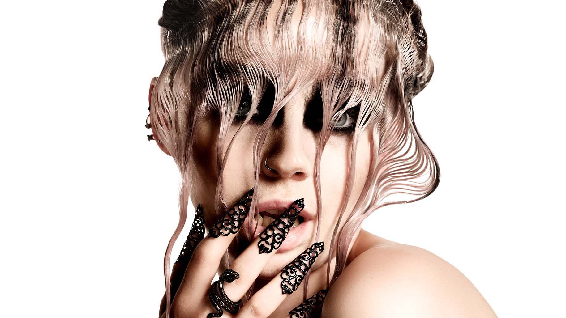 Los diseños intrincados de esta brillante colección firmada por la siempre inspiradora Shelley Lane vienen influidas por la naturaleza fluida y dinámica de las ondas sonoras. Como se observa en las imágenes, cada estilo captura la esencia de las frecuencias, traduciendo sus vibraciones en formas escultóricas únicas. Las curvas y líneas minuciosamente elaboradas en el cabello recrean patrones de ondas sonoras, mientras que los detalles decorativos añaden un aire futurista y etéreo.